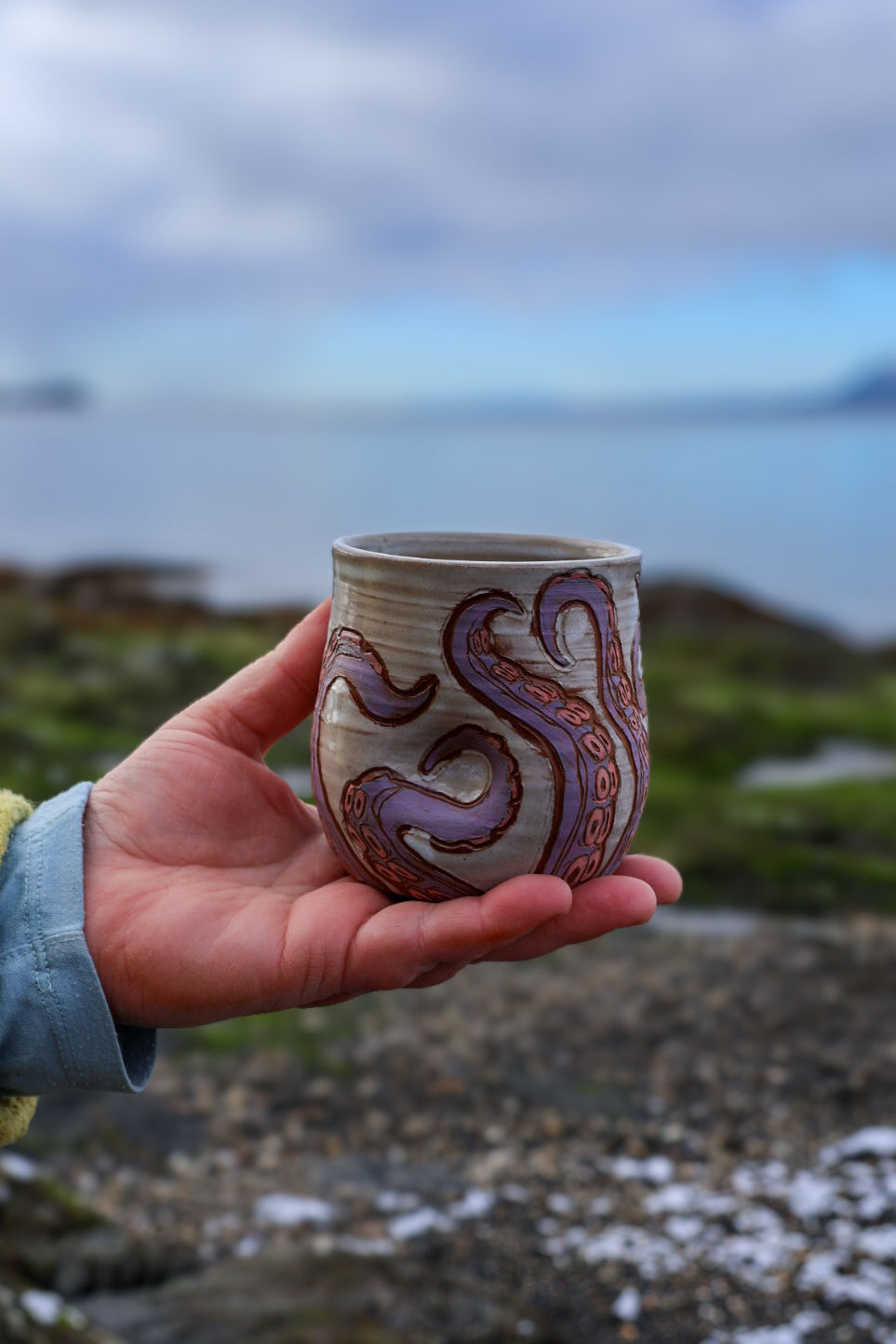 The Yelloowart x Seabird Pottery collection is a celebration of collaboration, creativity, and the beauty of handmade work. Each piece begins on the wheel, thoughtfully thrown and glazed by Rae Walton of Seabird Pottery, then finished with hand-carved or hand-painted illustrations by Tina Booth of Yelloow Art & Design. Together, their styles merge into functional pieces that are meant to be used, loved, and lived with.