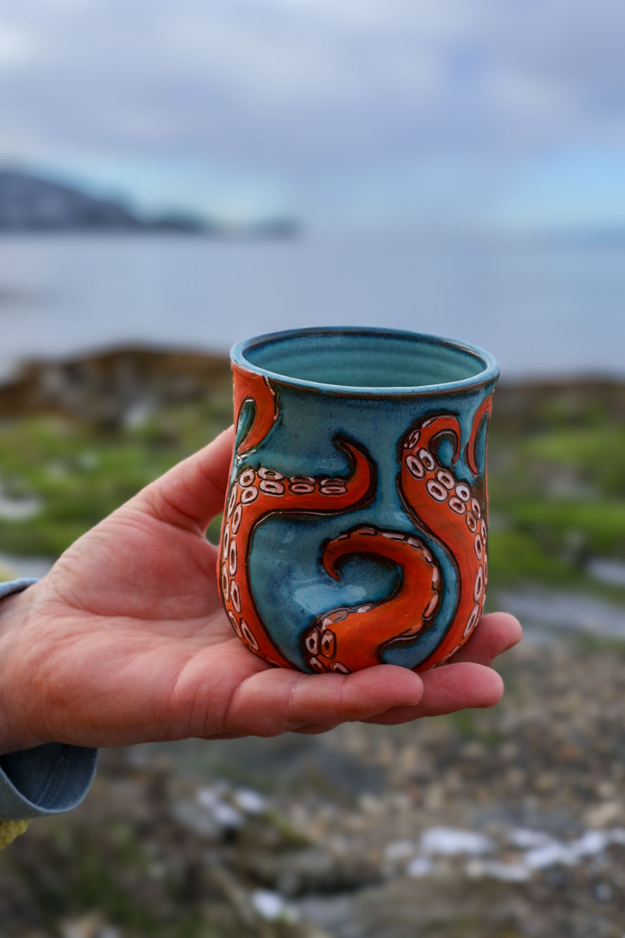 The Yelloowart x Seabird Pottery collection is a celebration of collaboration, creativity, and the beauty of handmade work. Each piece begins on the wheel, thoughtfully thrown and glazed by Rae Walton of Seabird Pottery, then finished with hand-carved or hand-painted illustrations by Tina Booth of Yelloow Art & Design. Together, their styles merge into functional pieces that are meant to be used, loved, and lived with.